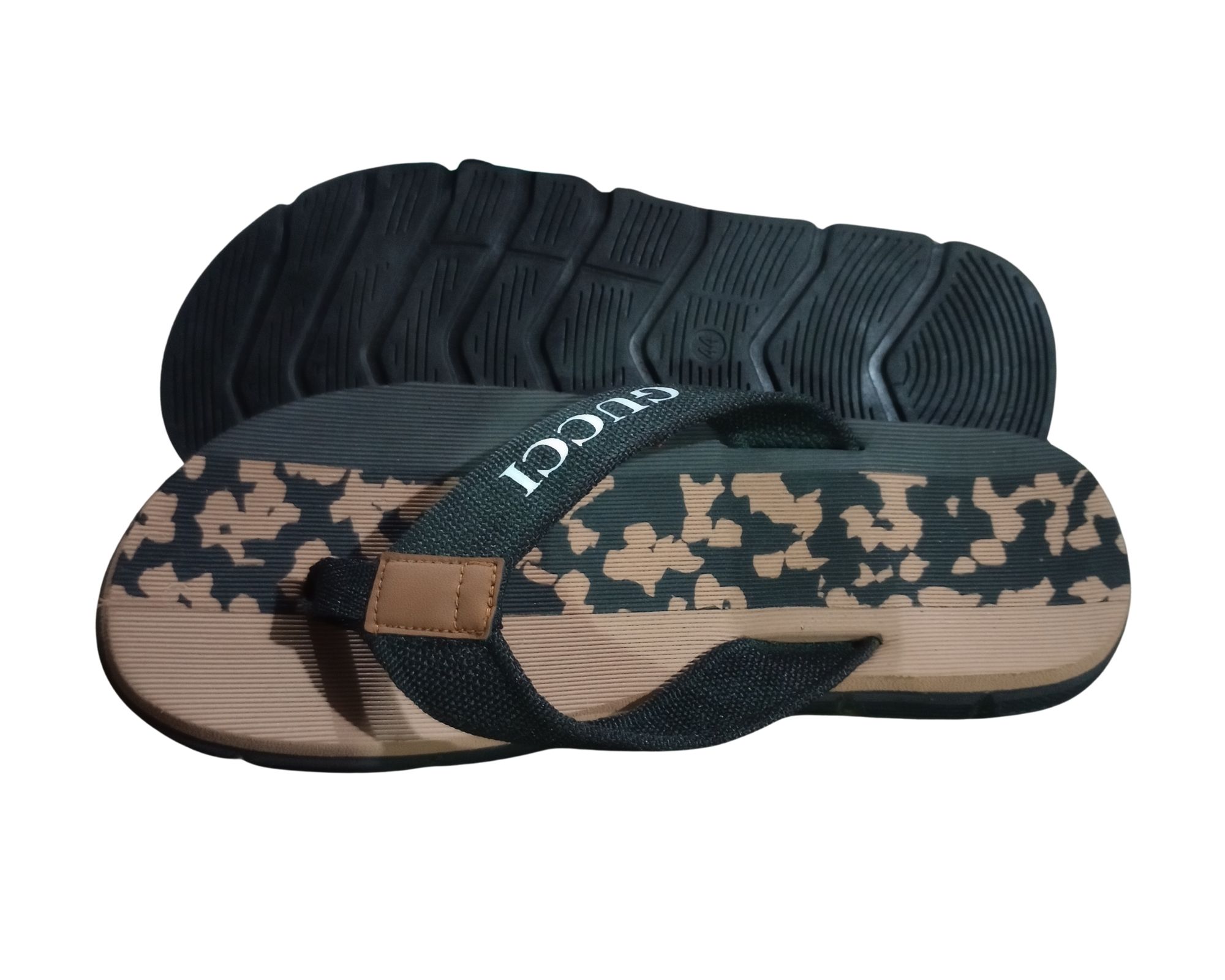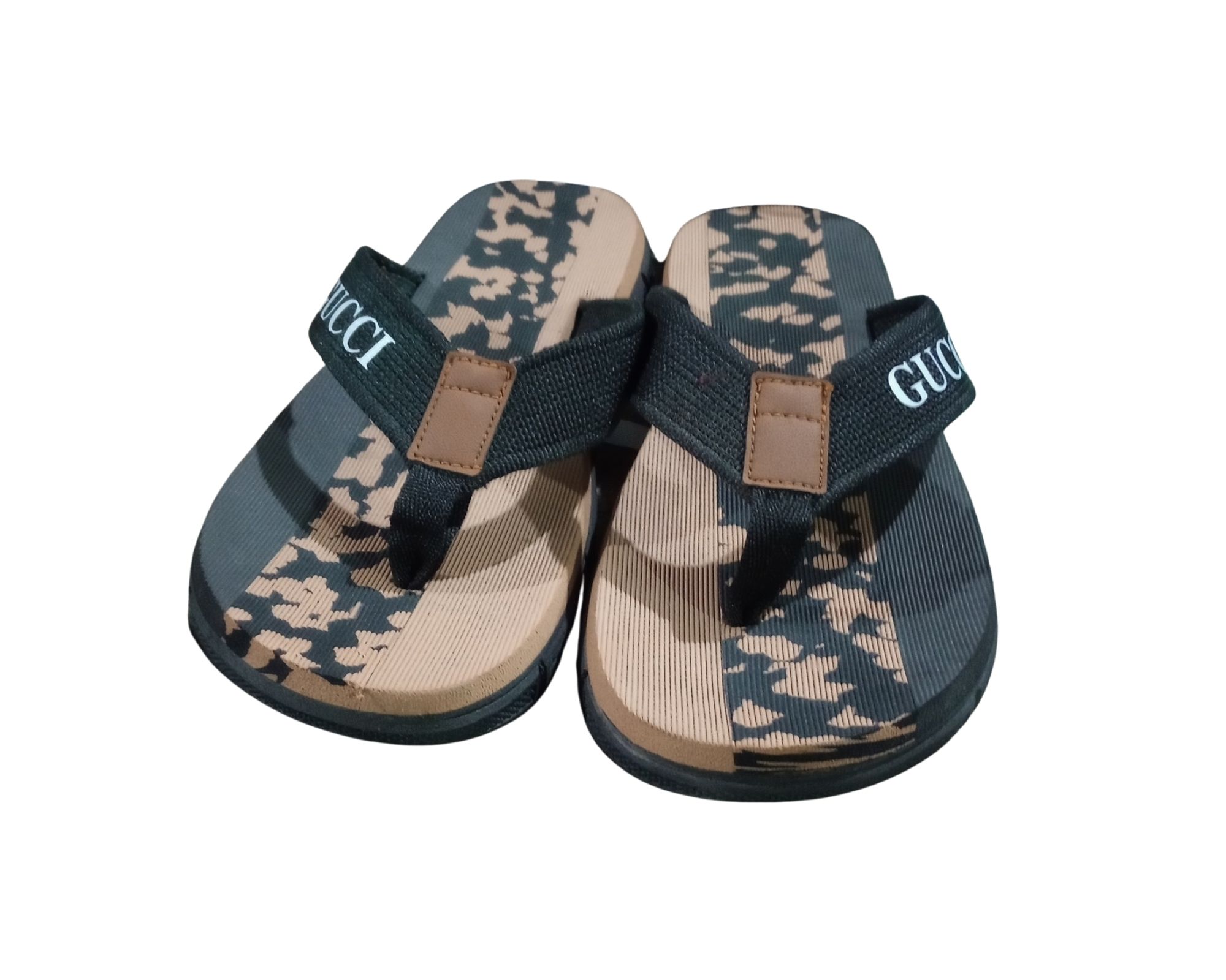 Step into modern comfort and iconic style with these Gucci Commando Flip-Flop Slippers. Designed for both relaxation and casual outings, these slippers feature a bold mustard brown camouflage-patterned footbed paired with premium fabric straps showcasing the signature Gucci branding.